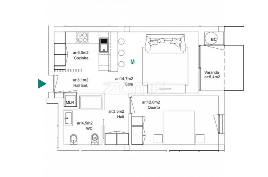 Apartment  T1+1 ZMPT572611
