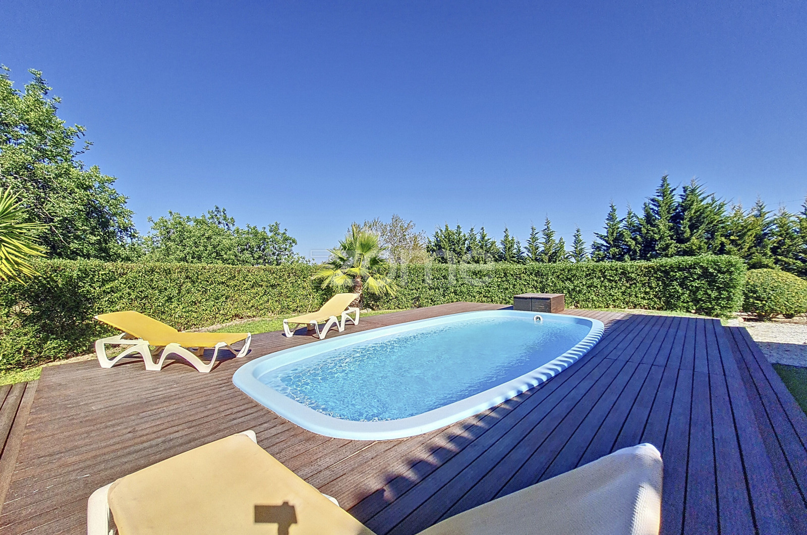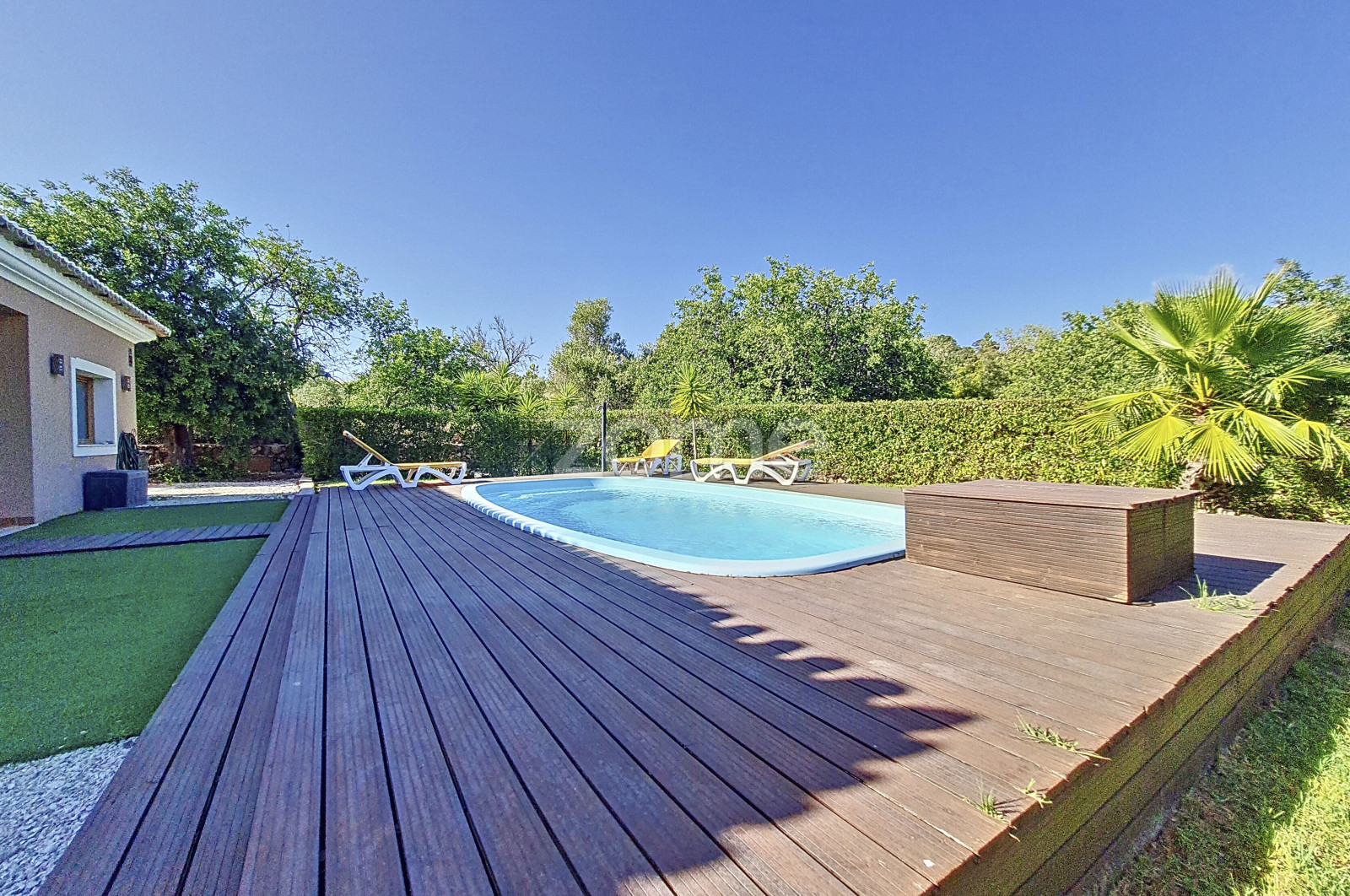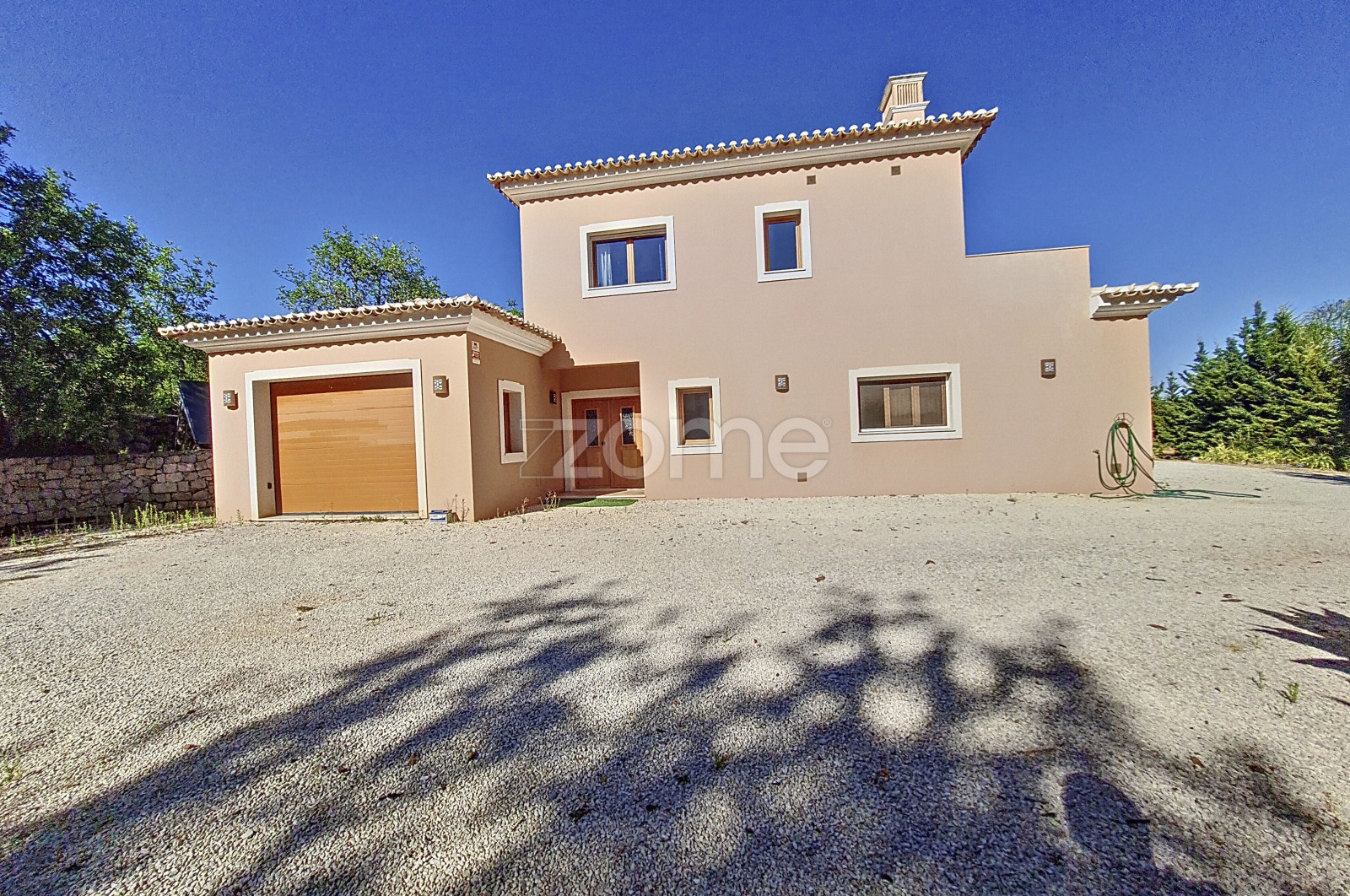 Moradia moderna com piscina e garagem, inserida num terreno